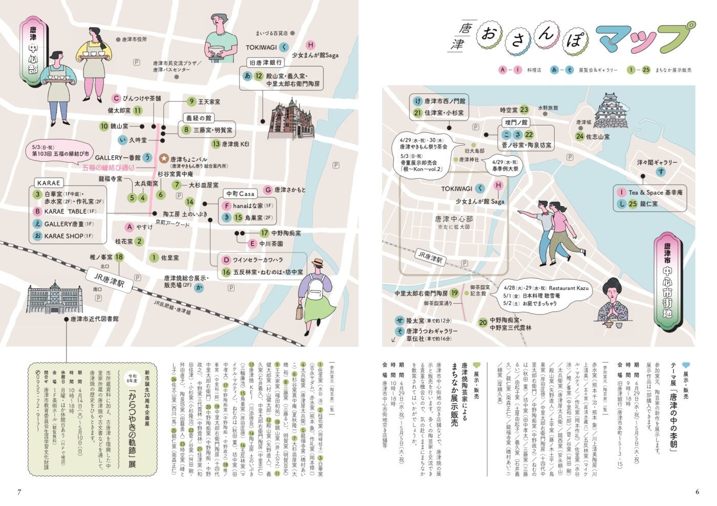 今年の唐津やきもん祭り(4/29~5/5)のまちなか展示販売、ギャラリー、料理店を記したMAPです。